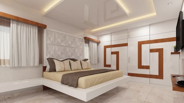 The residence is located in Mugapair, Chennai. It is a mix of traditional and contemporary design. Traditional elements and a contemporary TV unit are incorporated into the living room. All bedrooms are designed in a Contemporary style.